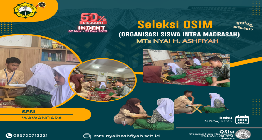 Pada hari Senin tanggal 2 februari 2026, pagi yang cerah, Fitriah Arum Selaku Pembina MTs.Nyai H.Ashfiyah resmi melantik 36 putra-putri terbaik sebagai pengurus OSIM masa bakti 2026/202
