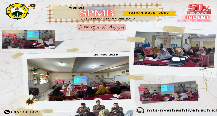 holaa sobat asfiyah! pada hari sabtu 29 November 2025 kami unit Mts Nyai H Asfiyah melakukan promosi SPMB inden kepada wali murid siswa/i Mi Nyai H Asfiyah yang tentunya di hadiri oleh team SPMB dari unit kami yaitu: