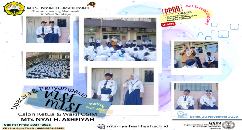 20 November 2023, setelah giat Upacara rutin setiap senin dalam 2 Minggu sekali, Upacara kali ini berbeda, karena ada pemaparan Visi dan misi para Calon Osim yang Baru. Di ikuti oleh seluruh siswa-siswi Madrasah, dan kelima pasangan Calon Osim tsb bergantian memaparkan Visi misinya di depan publik